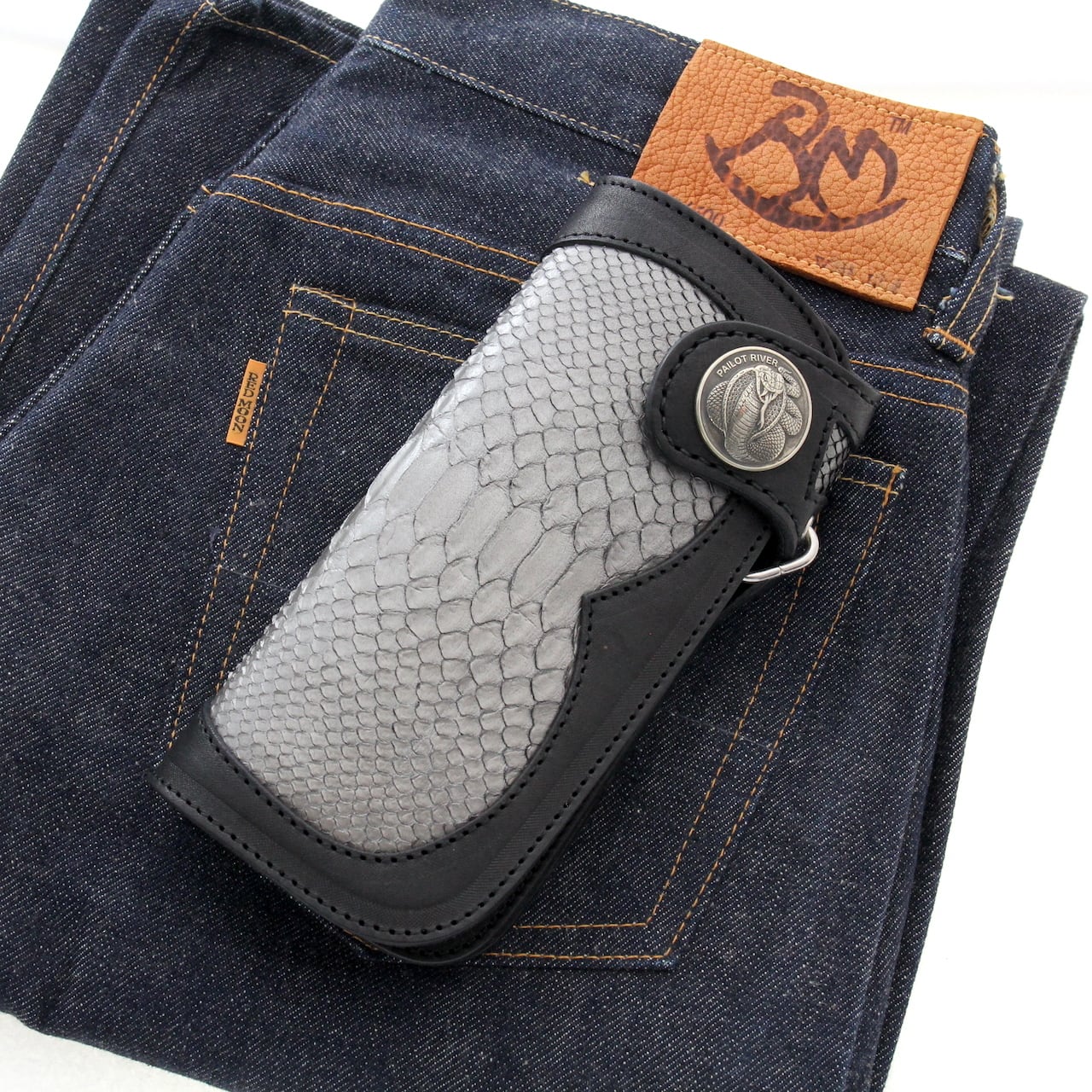 REDMOONオリジナルレザーを使用した本体はスタンダードモデルのCW02デザインの外装フレーム内には耐久性に優れたモラレスパイソンを使用しています。