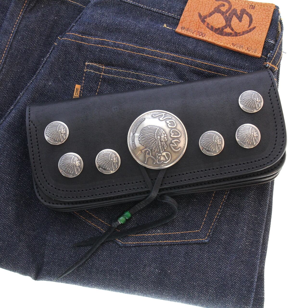 REDMOONオリジナルサドルレザーを使用した本体に51mm径のグランドマスターコンチョとREDMOON Zコインが装飾されインパクトあるモデルです。
