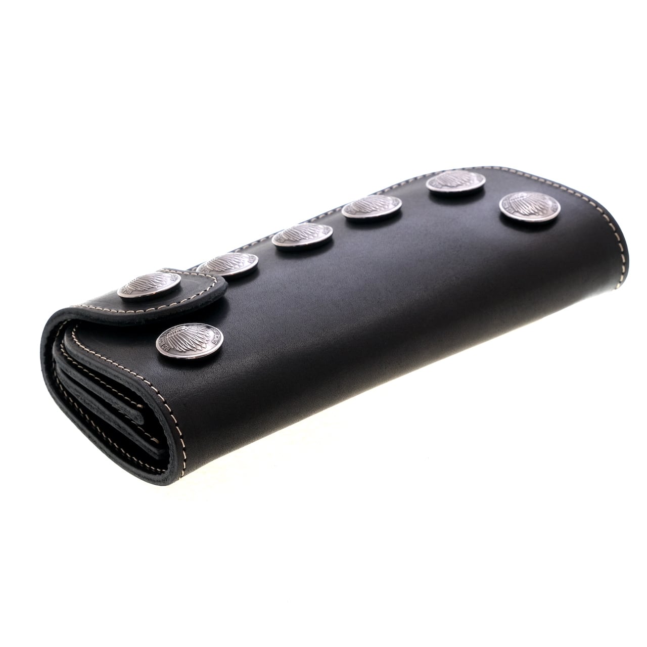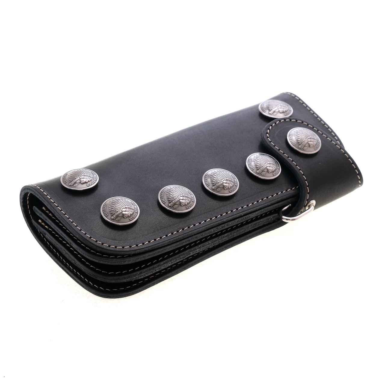 オールドバイカーの象徴である7個のコンチョ型ボタンが
