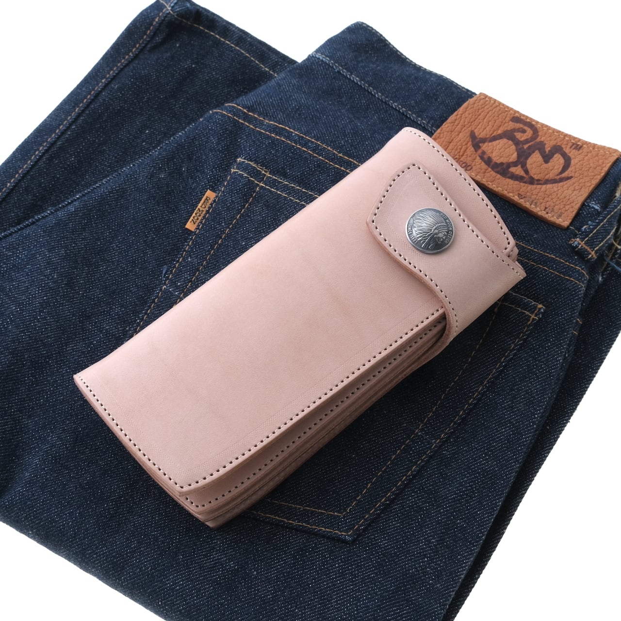 チェーンウォレットの名称で親しまれジーンズ等のヒップポケットとの相性は良く、かっこ良く収まりヒップポケットから見えるレッドムーンオリジナルコンチョが存在感あります。