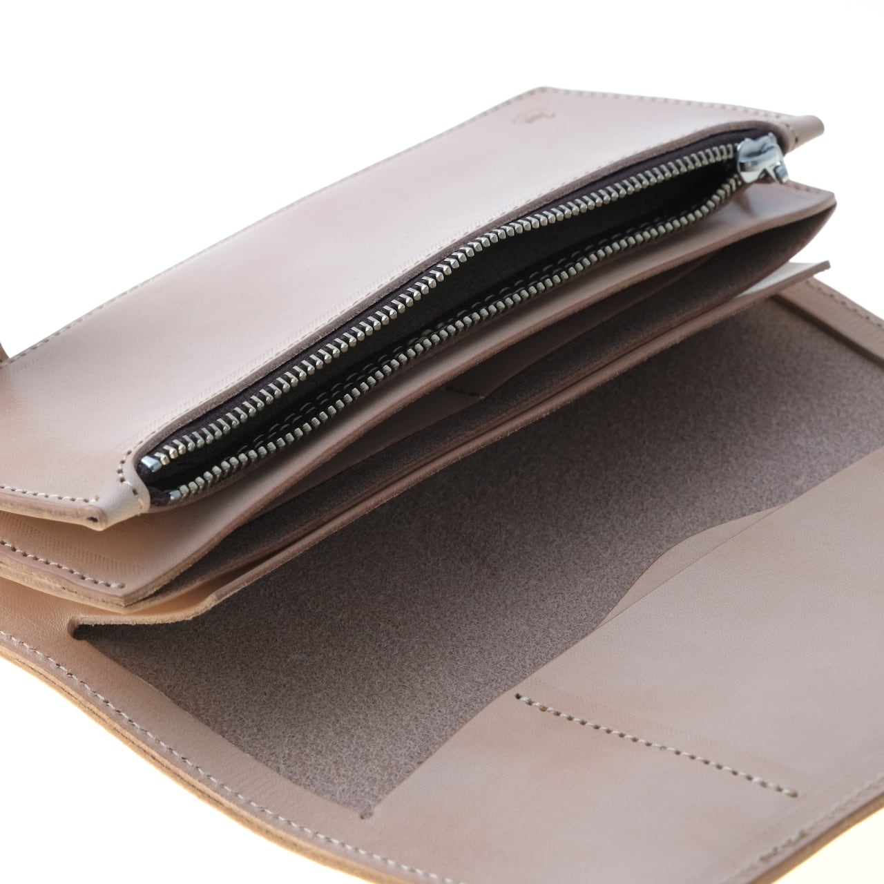 収納力あるコインケースはファスナー付きで、札入れを含めたフリーポケットは3箇所あります。