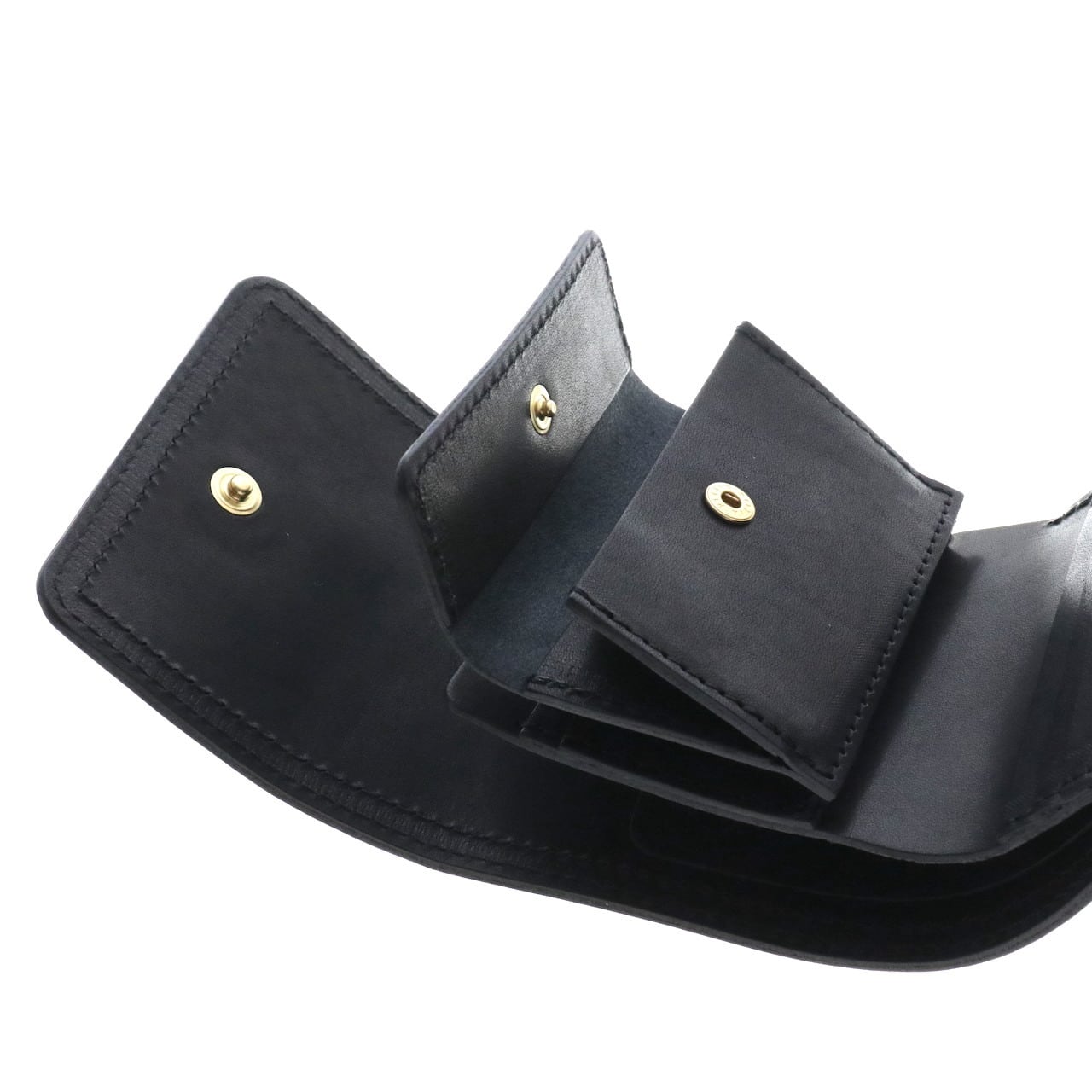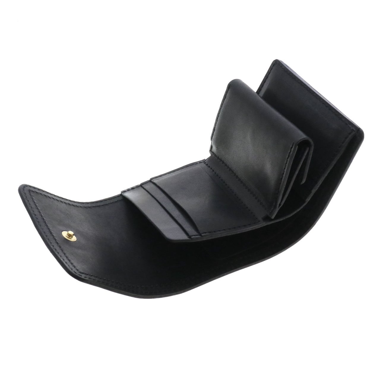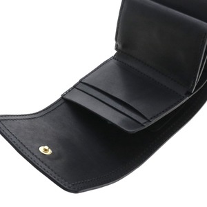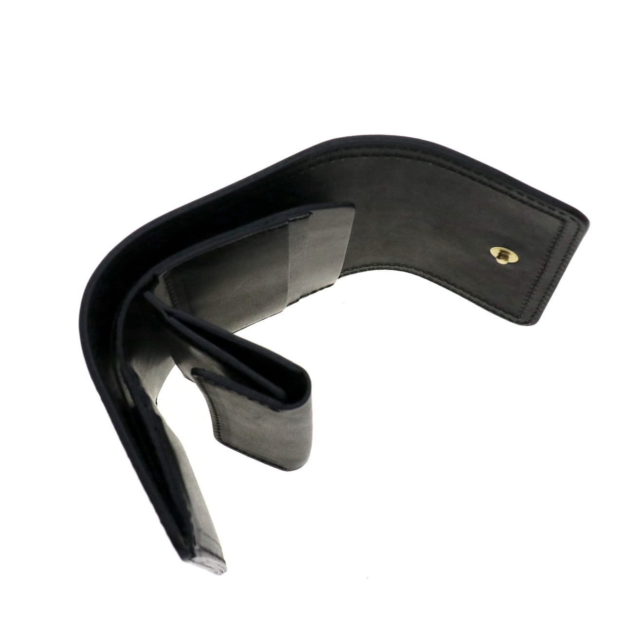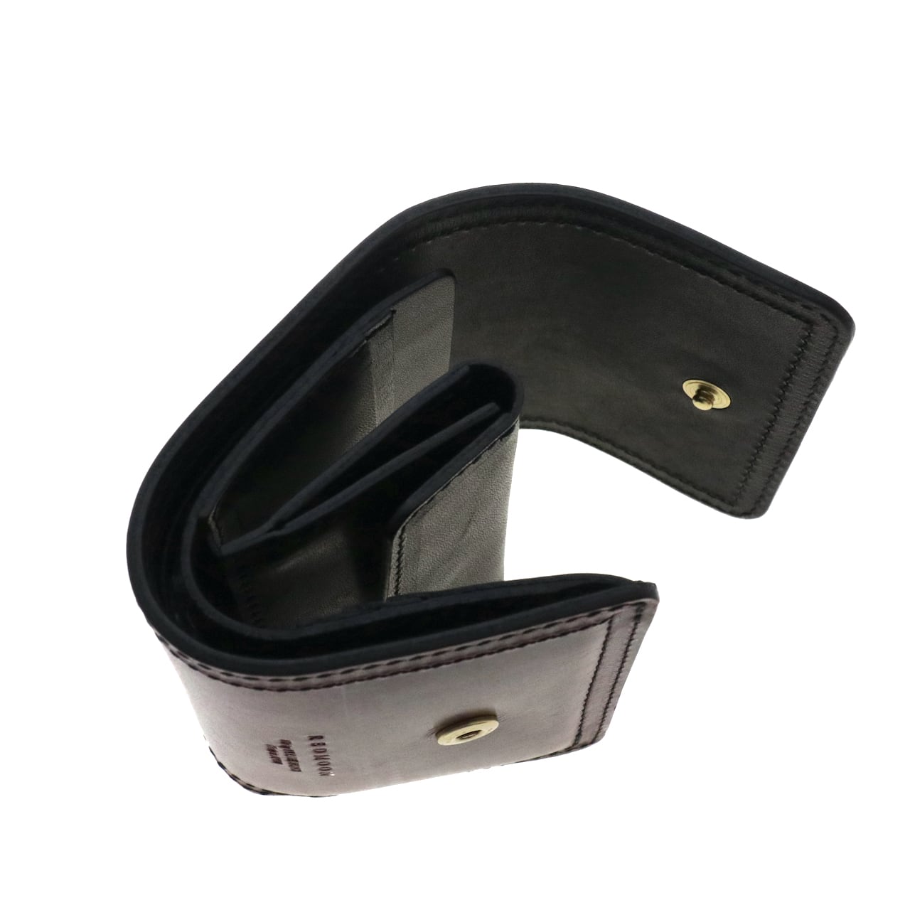 スナップボタン留めで収納部はマチ付きのボタン留めコインケースが中央にあり、両側にカードポケットが5箇所あります。