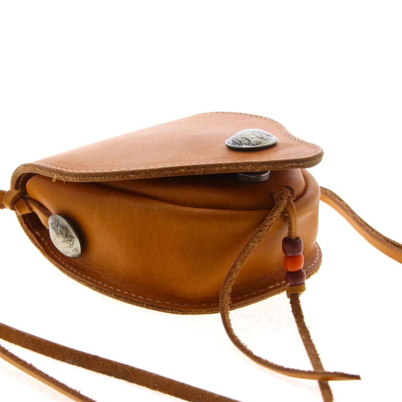 フラップと本体サイドに5セントコインのレプリカコンチョが付きます。