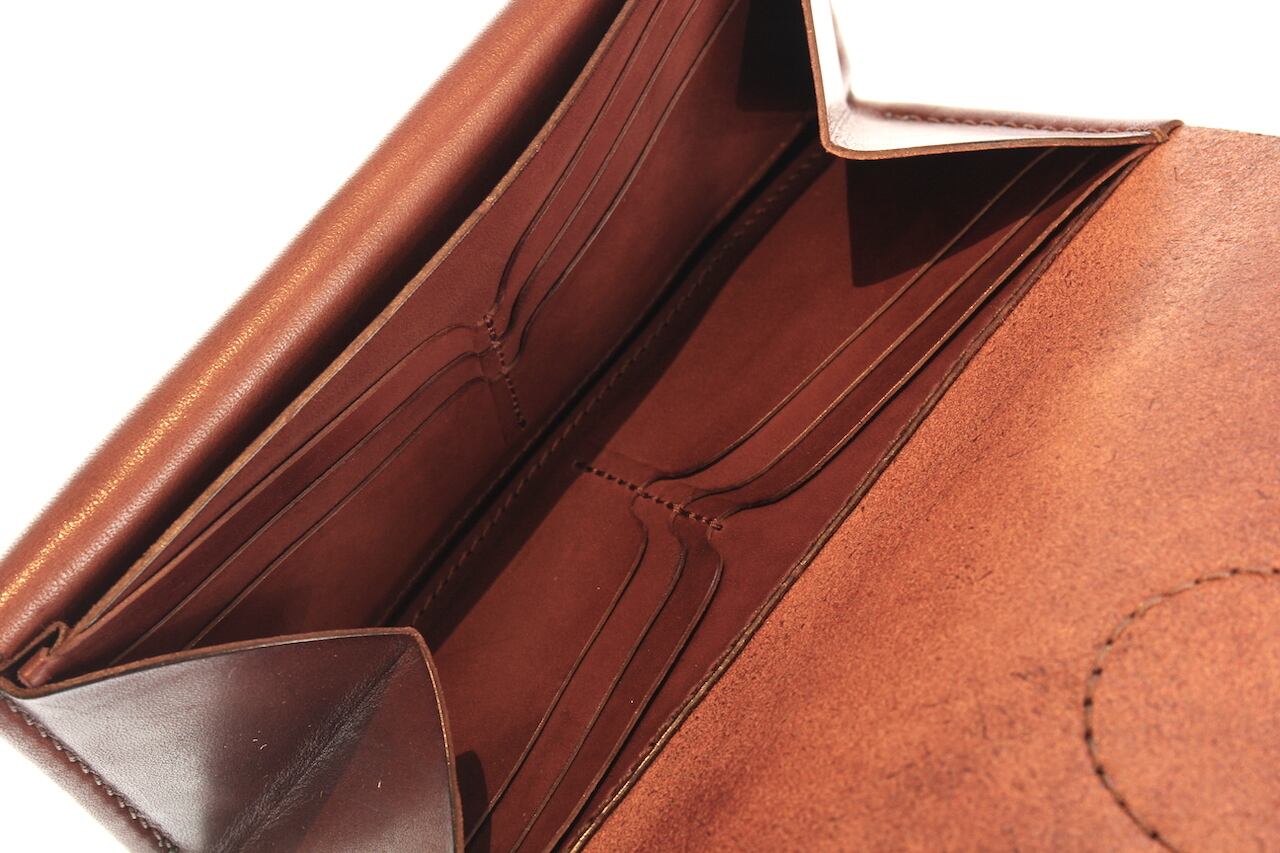 特徴あるインナーデザインは収納力ありカード入れが12箇所、札入れを含めたフリーポケットが2箇所ありマチ付きのコインケースは大きく開くのでコインの出し入れも簡単です。
