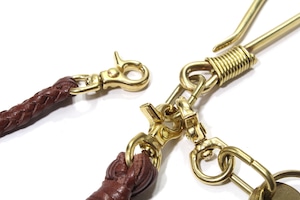 REDMOONウォレットロープ「ブラスフック」 REDMOONオリジナルレザーを使用した、オリジナルデザインブラスフック付きのウォレットロープです。 3mm幅のレースを8本編みで仕上げており存在感もあります。 ブラス(真鍮)パーツを贅沢に使用しており、サドルレザーとのバランスも良く腰回りのワンポイントアクセサリーとしても楽しめます。 フラッグインディアンを刻印したアンティーク調のプレートが付いています。 全長 約46cm ご注文確定後2〜4週間でのお届け予定となります。