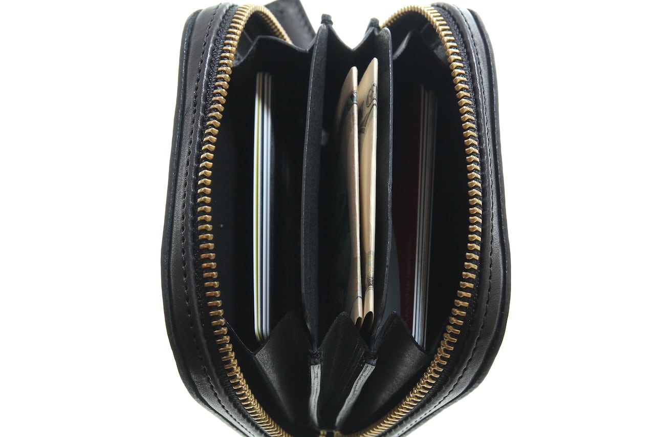 ファスナーの開閉で大きく開き、沢山のカードが収納出来るのが特徴のデザインです。
