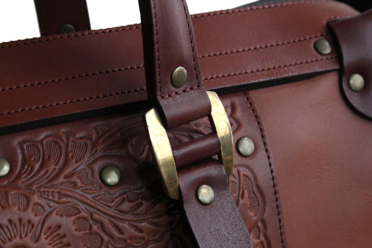 ハンドル部のバックルは真鍮製でオリジナルデザインとなります。