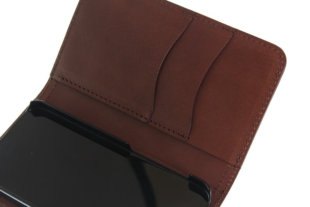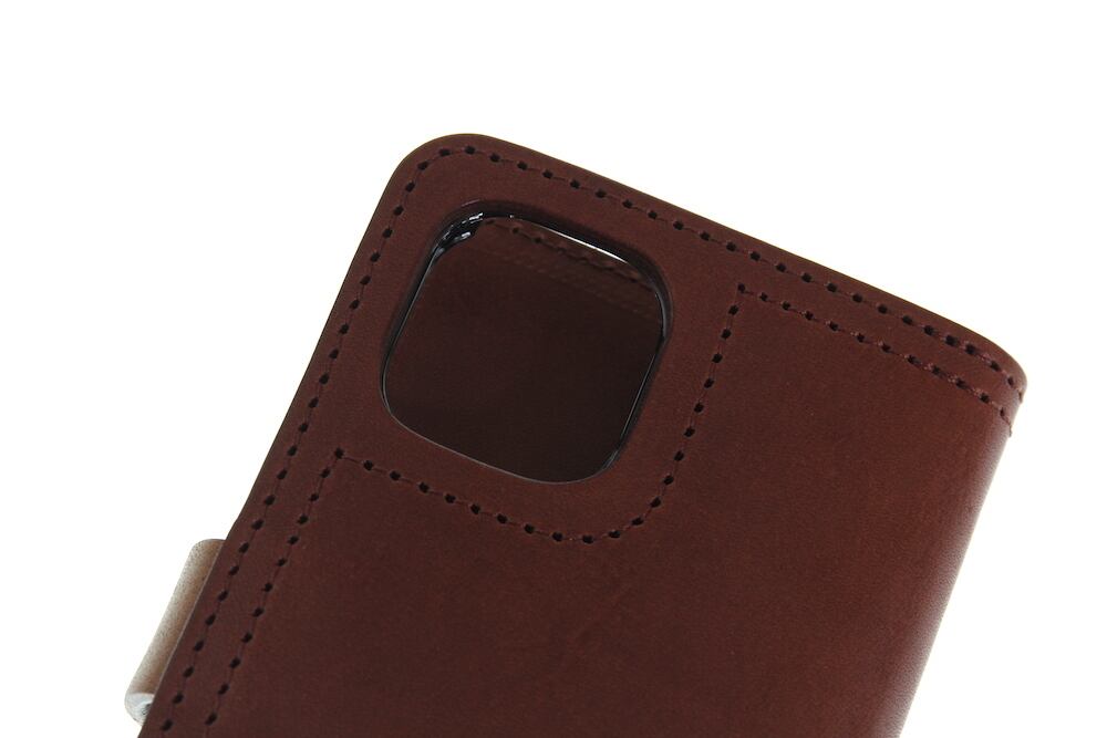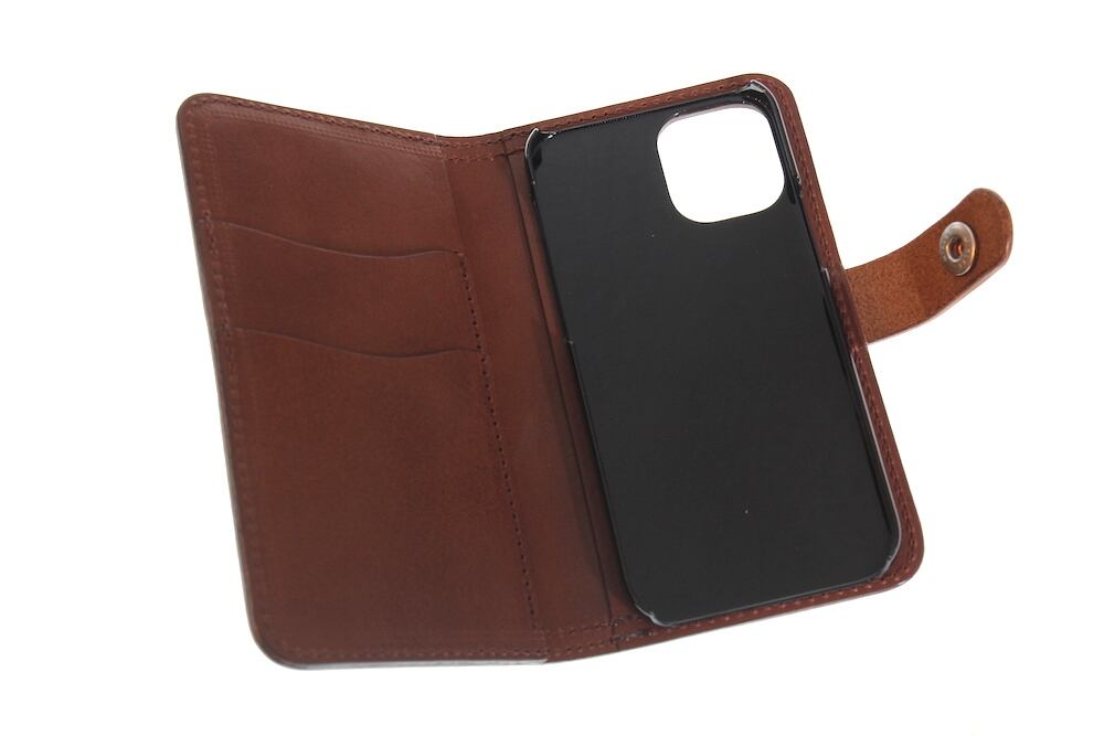 オリジナルサドルレザーを使用した手帳型スマートフォンケース、iPhone 12 mini専用モデル。