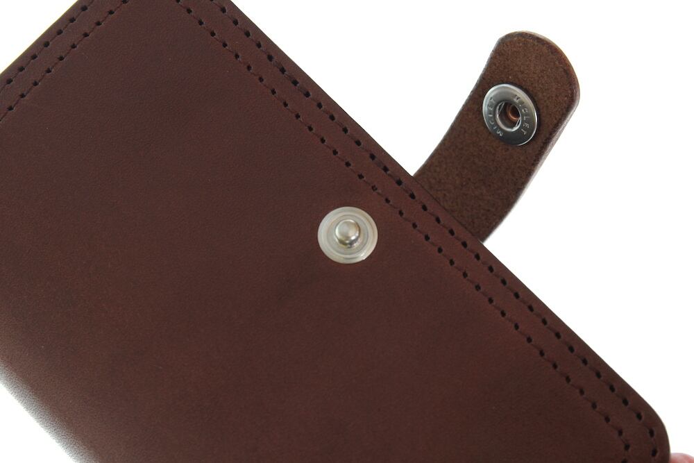 スナップボタンで開閉し、フラップ部インナーにはカード入れが2箇所とフリーポケットが付いているのでクレジットカードやポイントカード等の持ち歩きにも便利です。