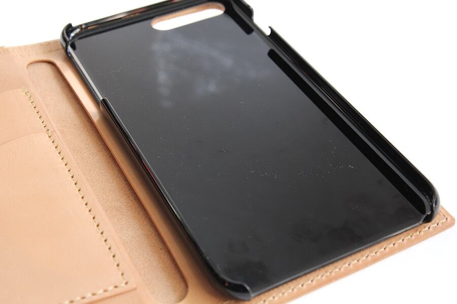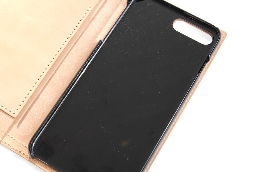 インナーにはiPhone7 Plusが丁度よく収まるハードケースが付いています。