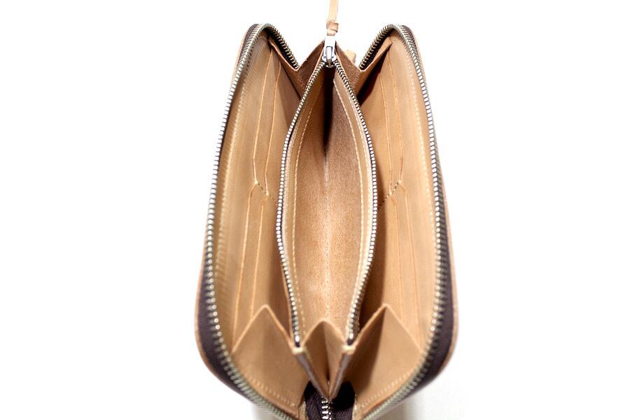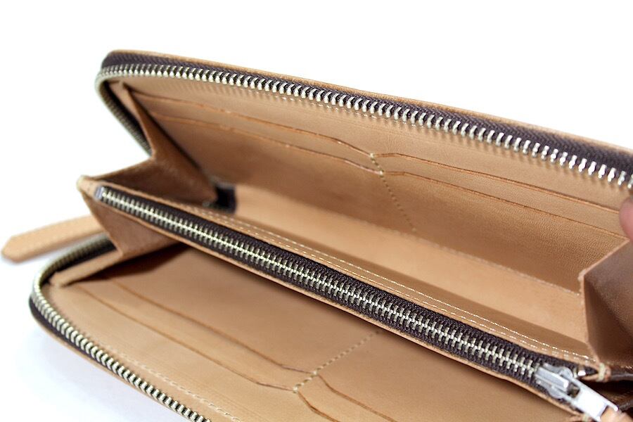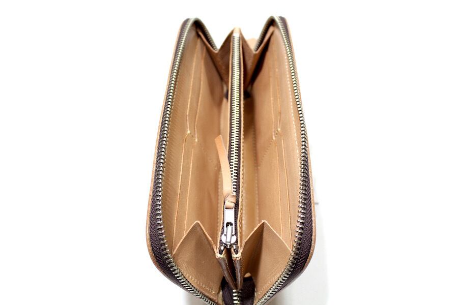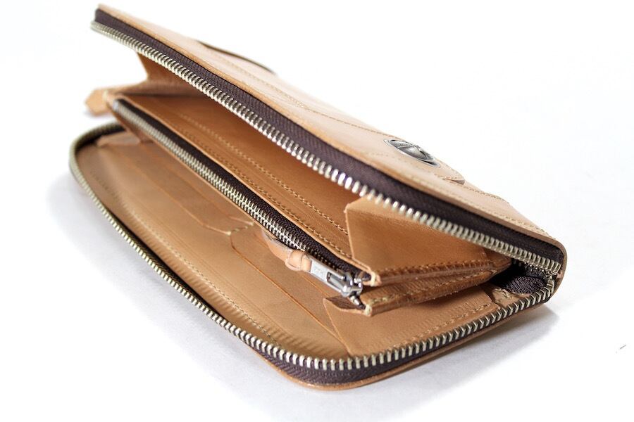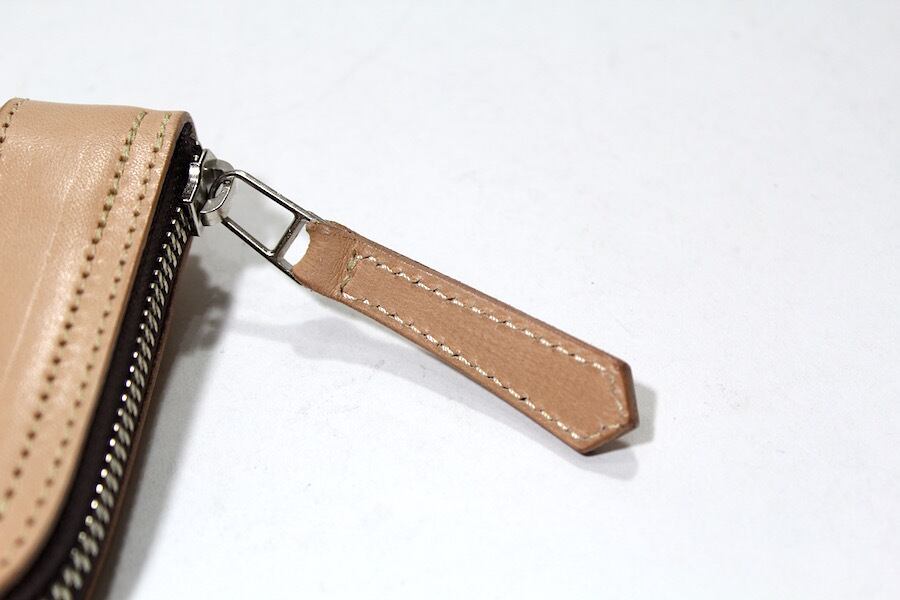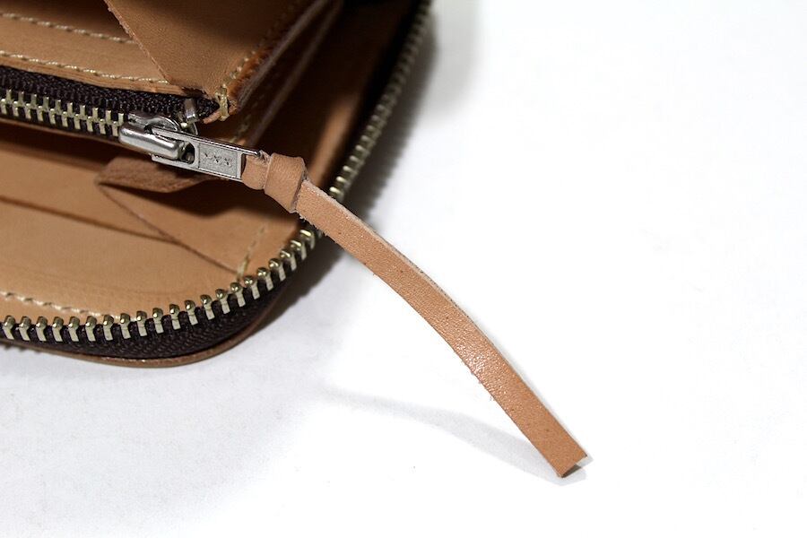 コインケースファスナー引き手はレザーノブが付きます。