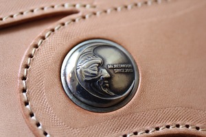 人気のLoading Pochetteモデルの本体フェース面にはREDMOONの定番ロングウォレットストラップ部がデザインされておりMr.REDMOONのオリジナルコンチョが装飾されています。
