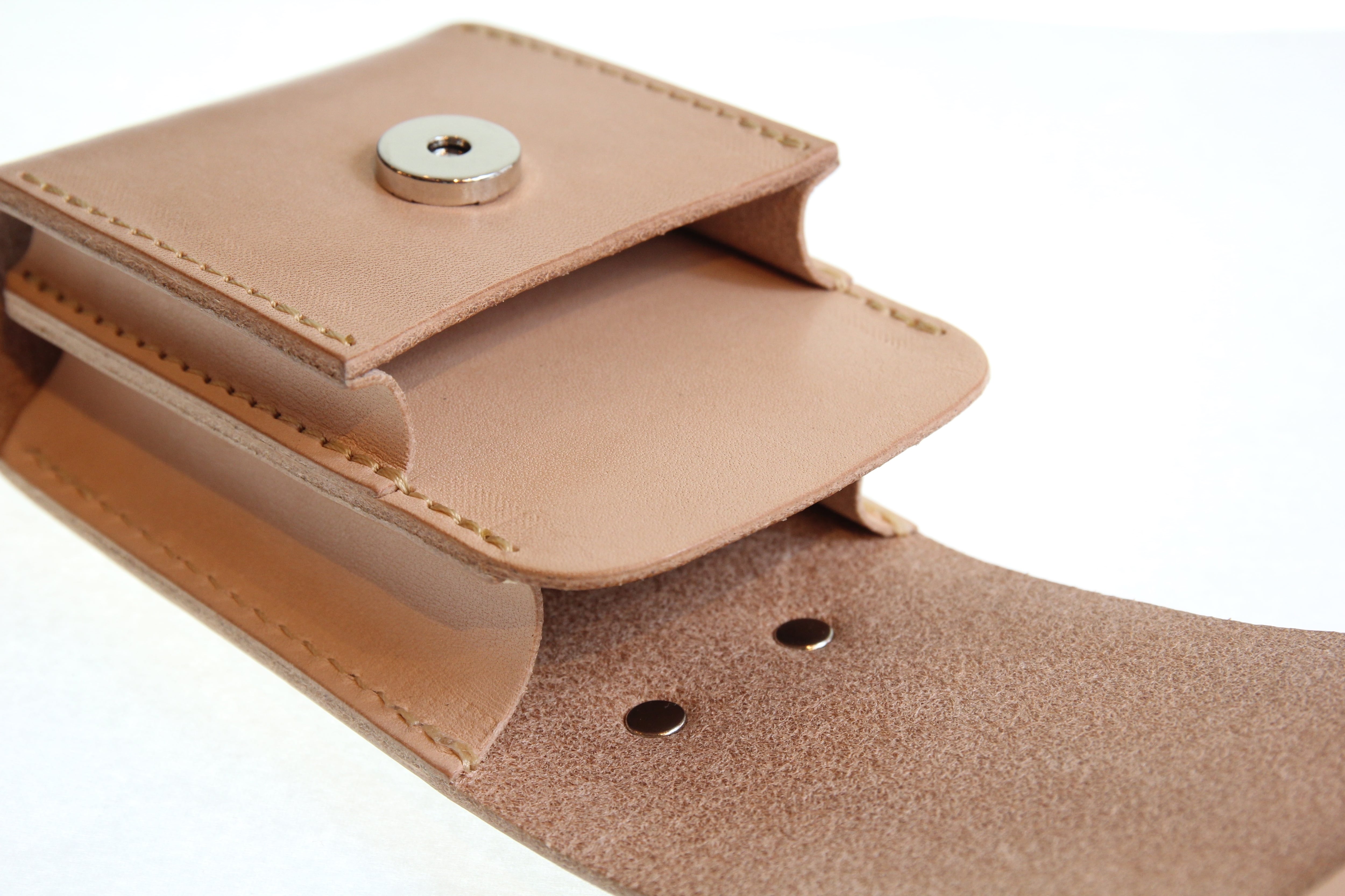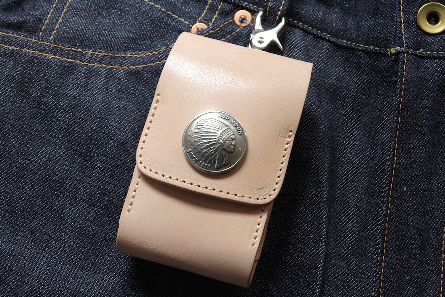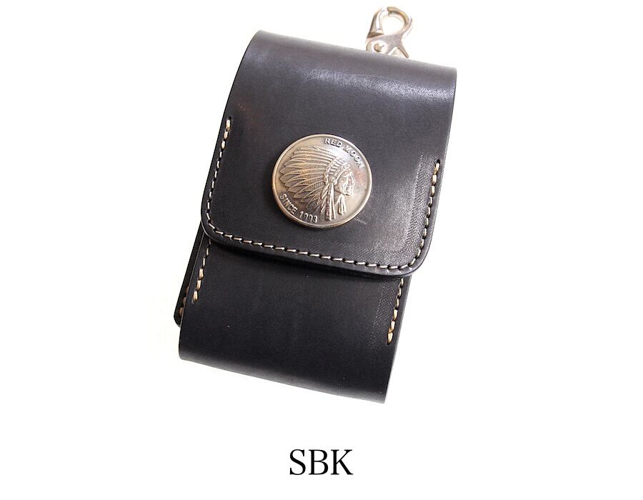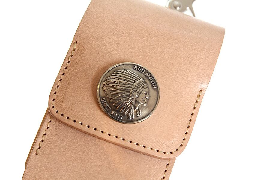 オリジナルサドルレザーを使用した本体フラップ部にはREDMOONオリジナル30mmコンチョが装飾されており開閉はマグネットタイプとなります。