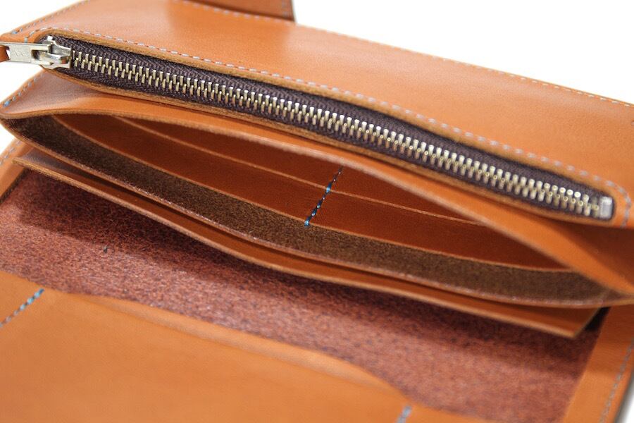 収納力あるコインケースはファスナー付きで、カード入れは5箇所あり札入れを含めたフリーポケットは3箇所あります。