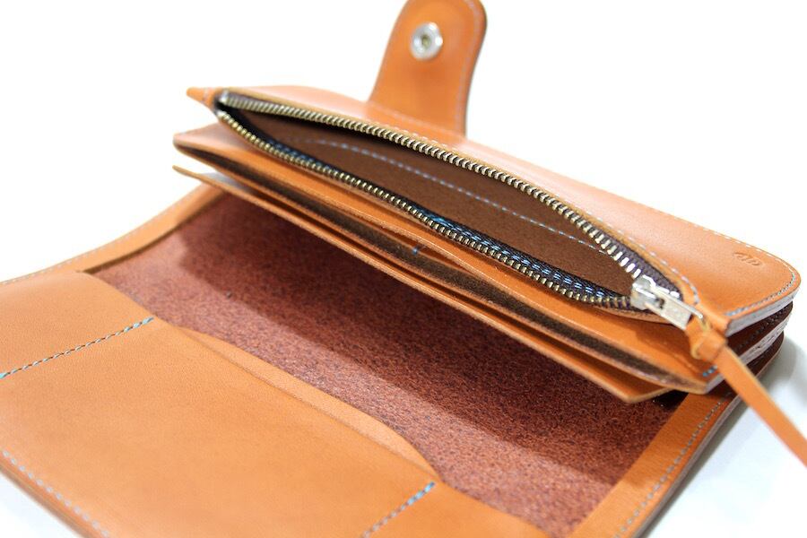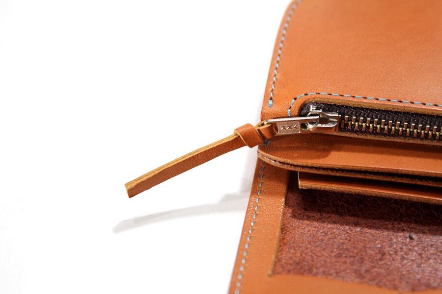 コインケースファスナー引き手はレザーノブが付きます。