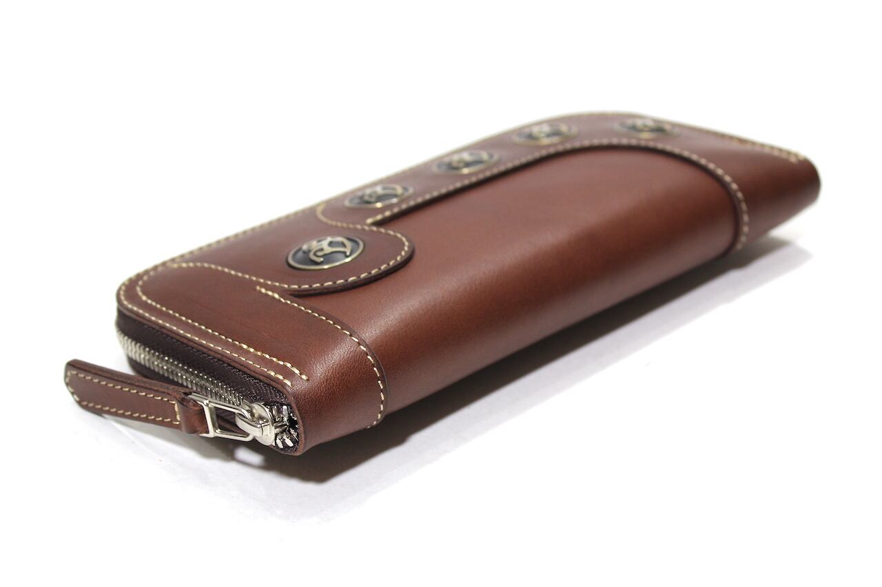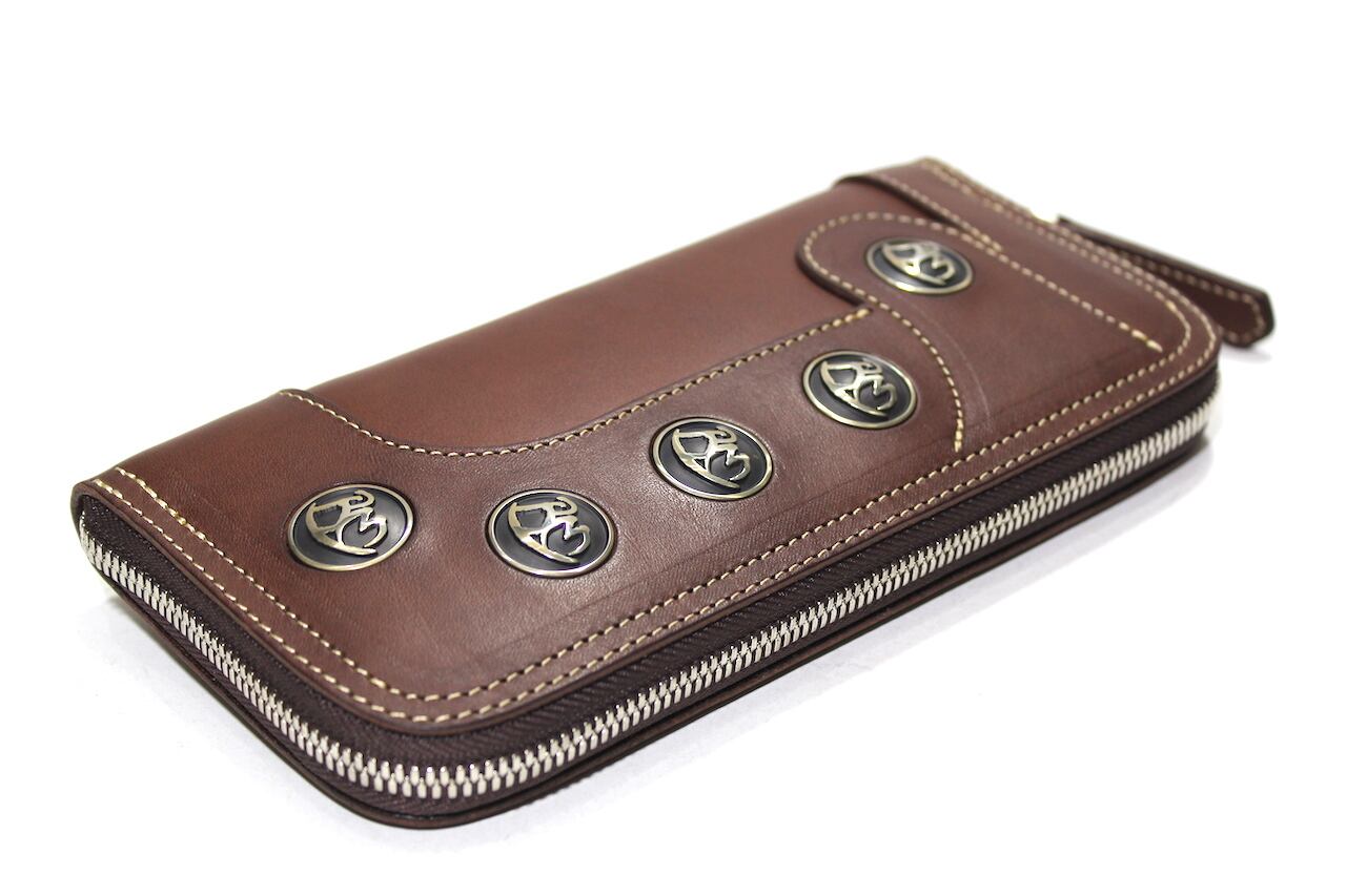 人気のロングウォレット「HERITAGE」モデルにREDMOONロゴであるロッキングRMコンチョをオールドバイカーデザインで装飾したモデルです。
