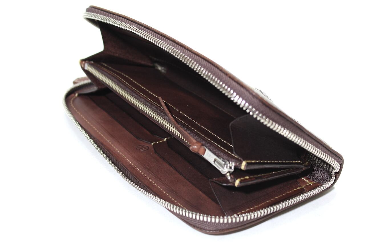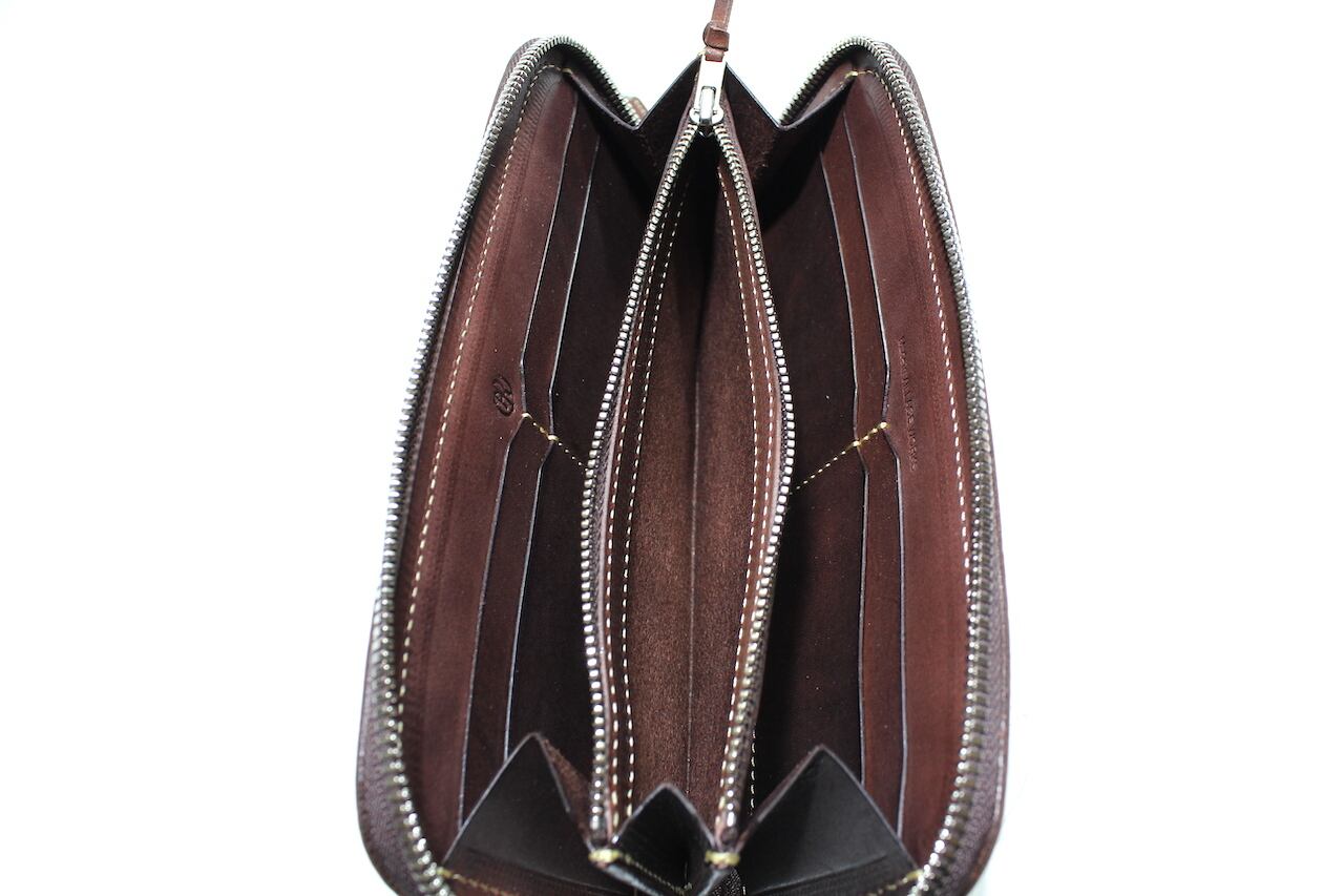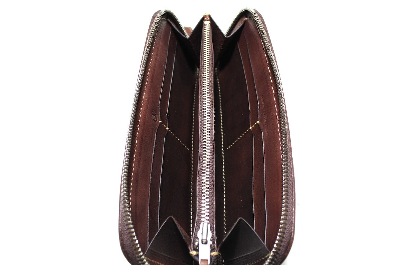 サドルレザーを使用したインナーは中央にコインケース があり両側にカード入れが8箇所あります。