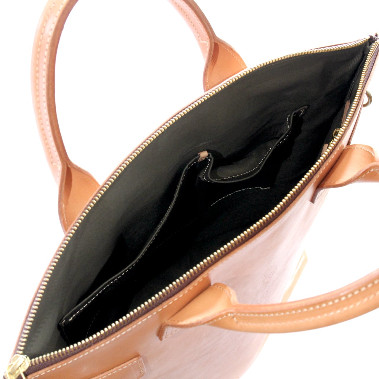 インナ裏地にはファスナー開閉ポケットが1カ所、サイズ違いでフリーポケットが2ヶ所あります。