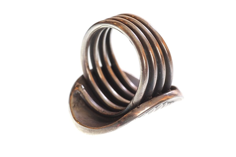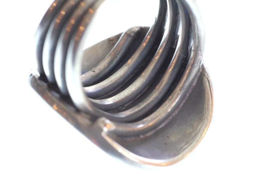 リング部は4連の螺旋デザインで幅(7mm-11mm)も広くインパクトあり、はめ心地も良いリングです。